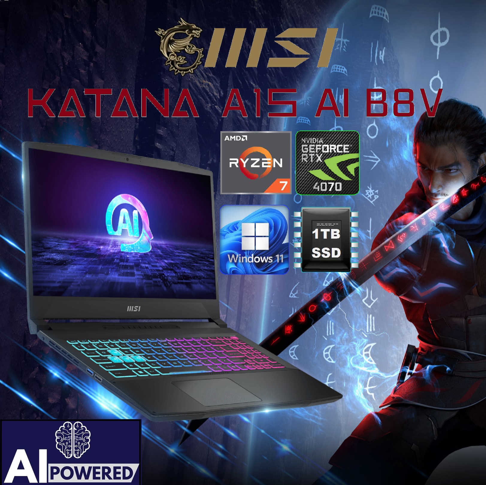Introducing the MSI KATANA A15 Gaming Laptop, powered by the advanced